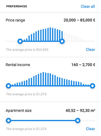 Compared to buying price of 5,000.00 € per m2 in Cologne or Dusseldorf, we are able to find opportunities in the range 1,300.00 – 1,600.00 € per m2. This directly benefits the investor, since it limits the downside price risk of the apartment.